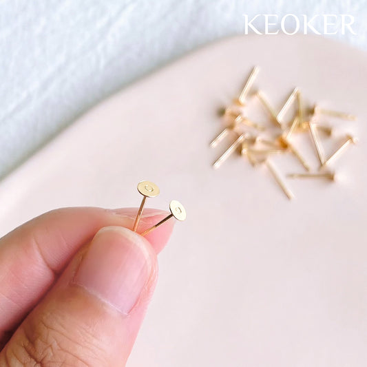 KEOKER 14K Gold Filled 4mm Flat Pad Earring Post (20PCS)