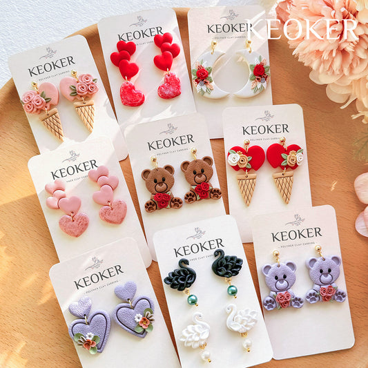 KEOKER Valentine's Day Polymer Clay Earrings, Heart Clay Earrings