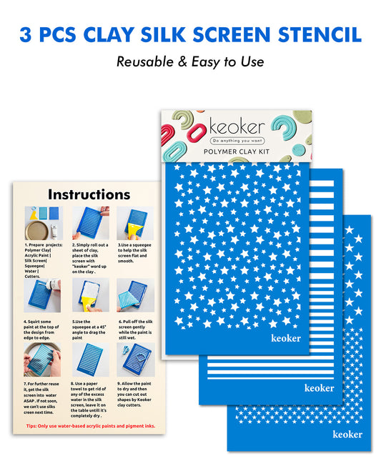 KEOKER Silk Screen Stencils for Polymer Clay(3 PCS)
