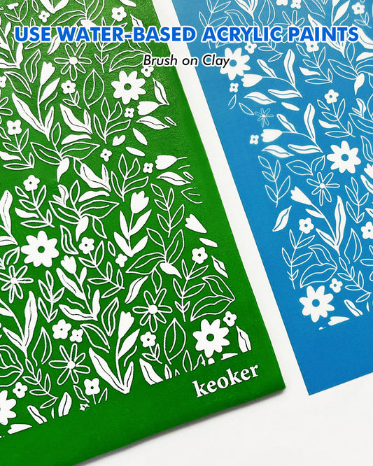 KEOKER Floral Silk Screen Stencils for Polymer Clay(10 PCS)