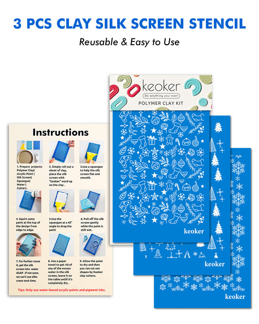 KEOKER Christmas Silk Screen for Polymer Clay(3PCS)