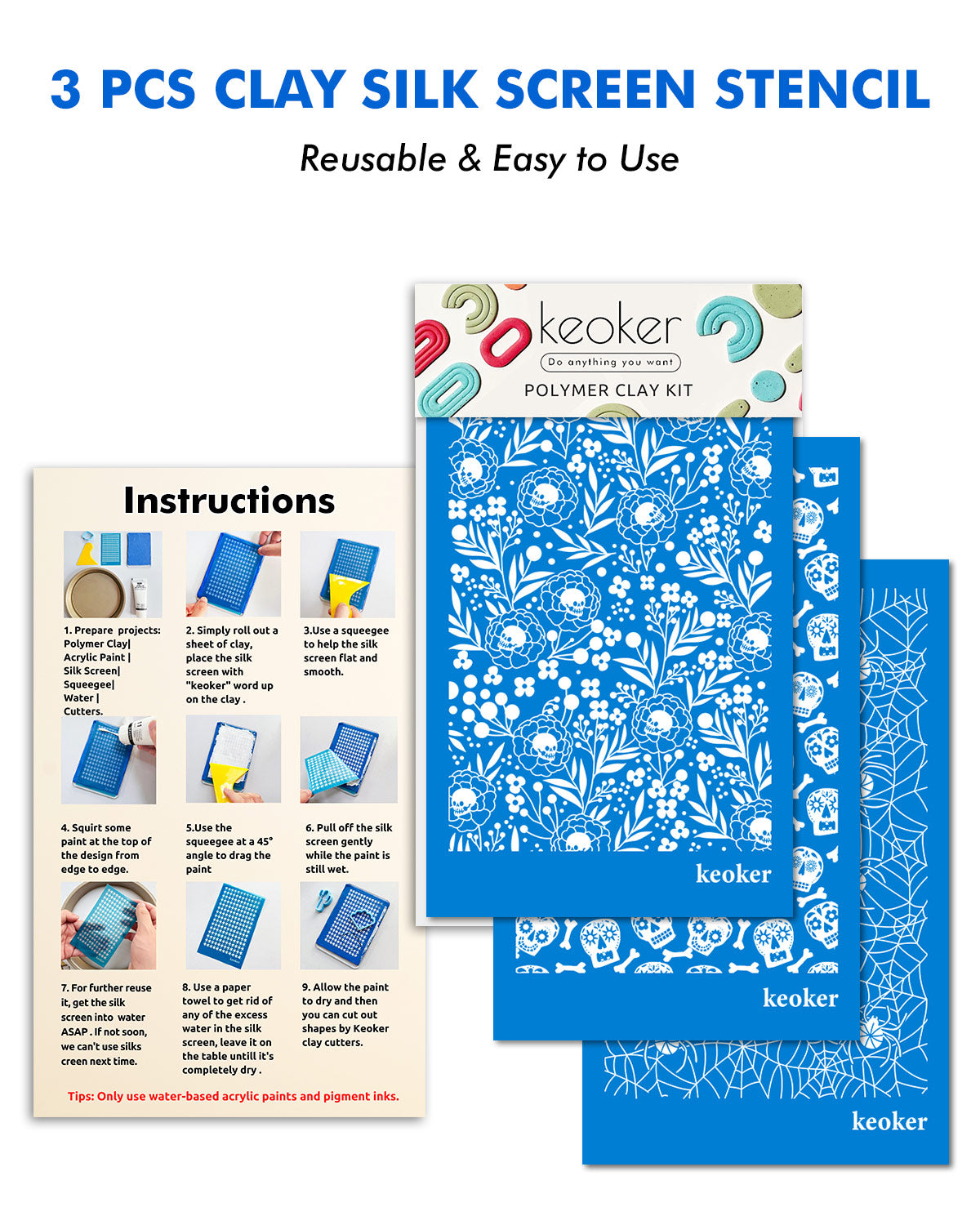 KEOKER Halloween Silk Screen for Polymer Clay (3 PCS)