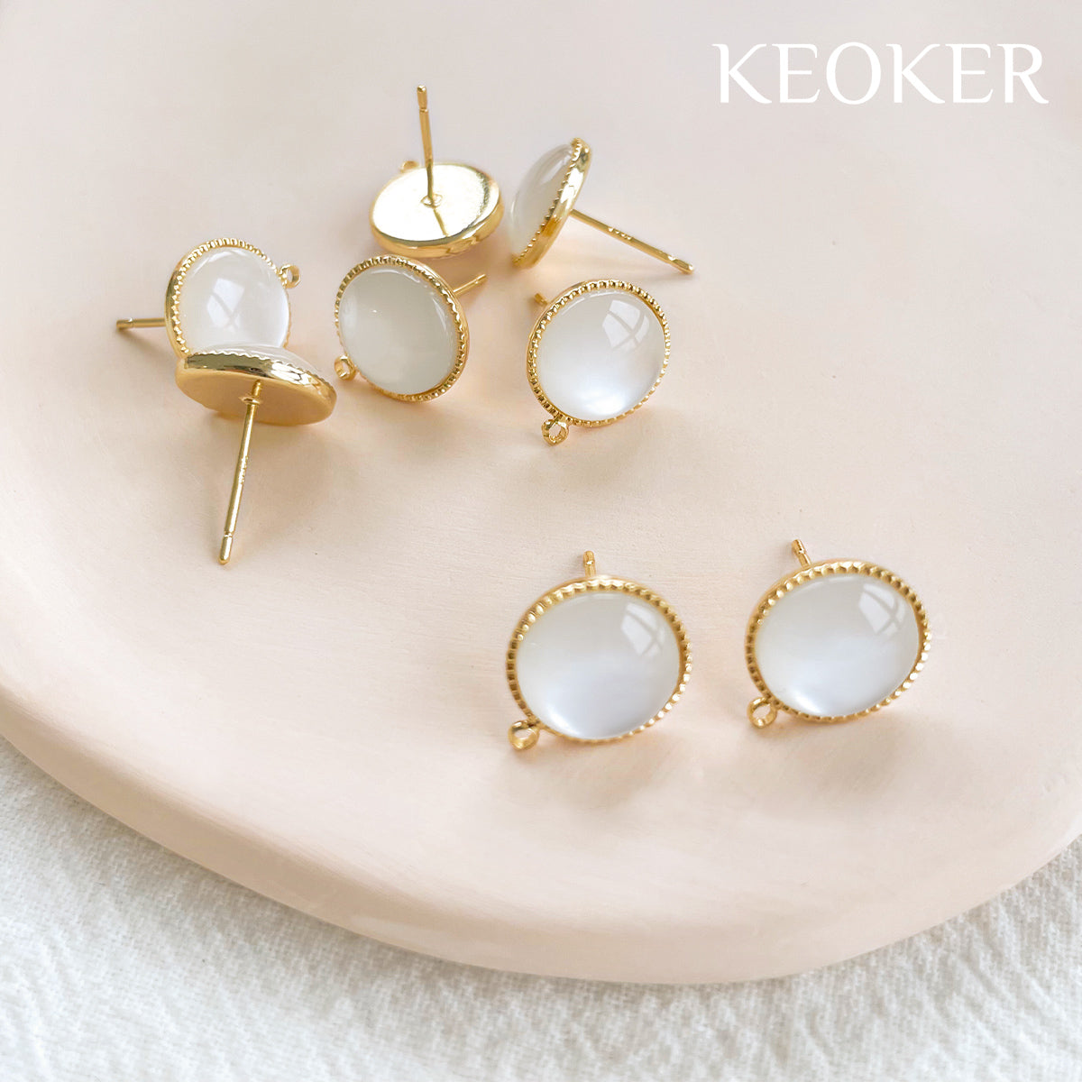 KEOKER 14K Gold Filled Brass Opal Stud Earrings with Loop (4 PCS)