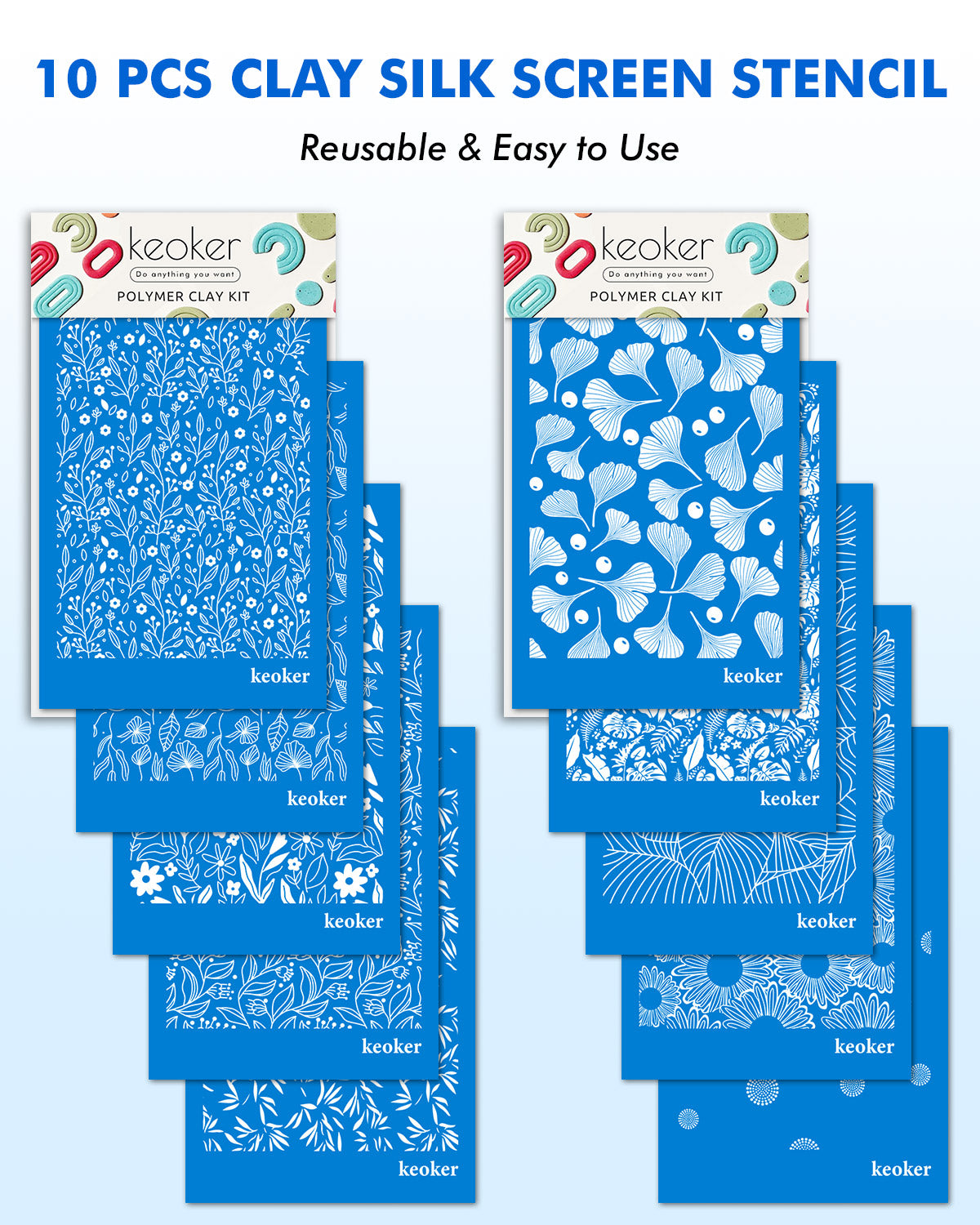 KEOKER Floral Silk Screen Stencils for Polymer Clay(10 PCS)