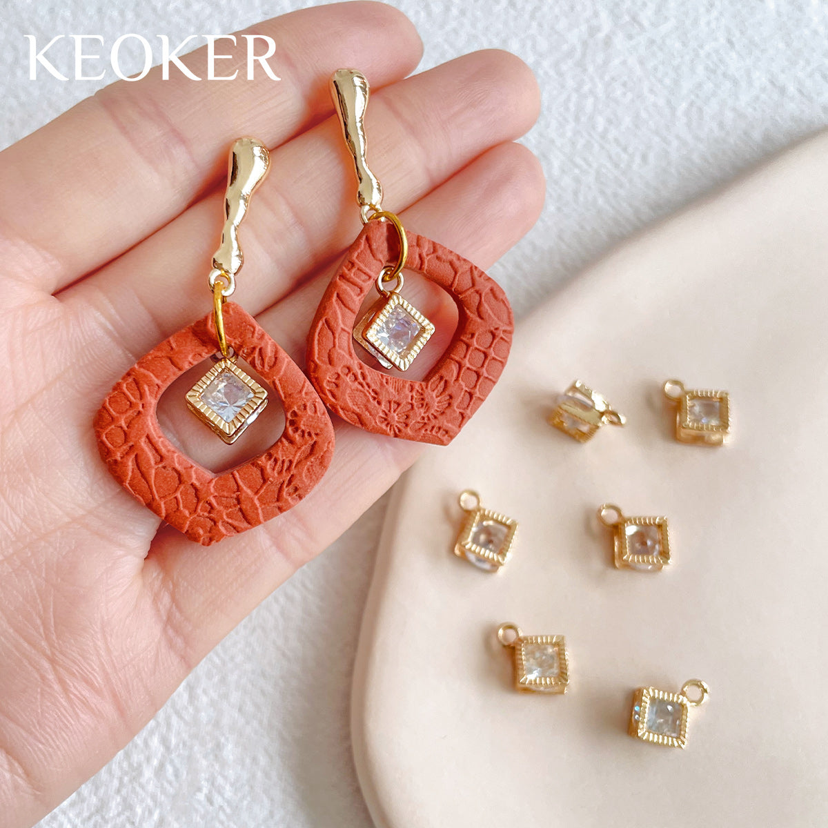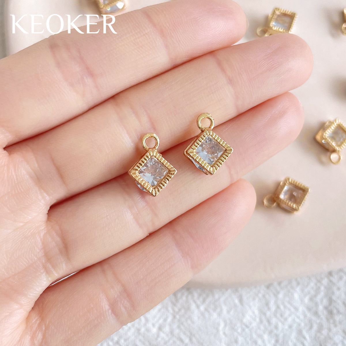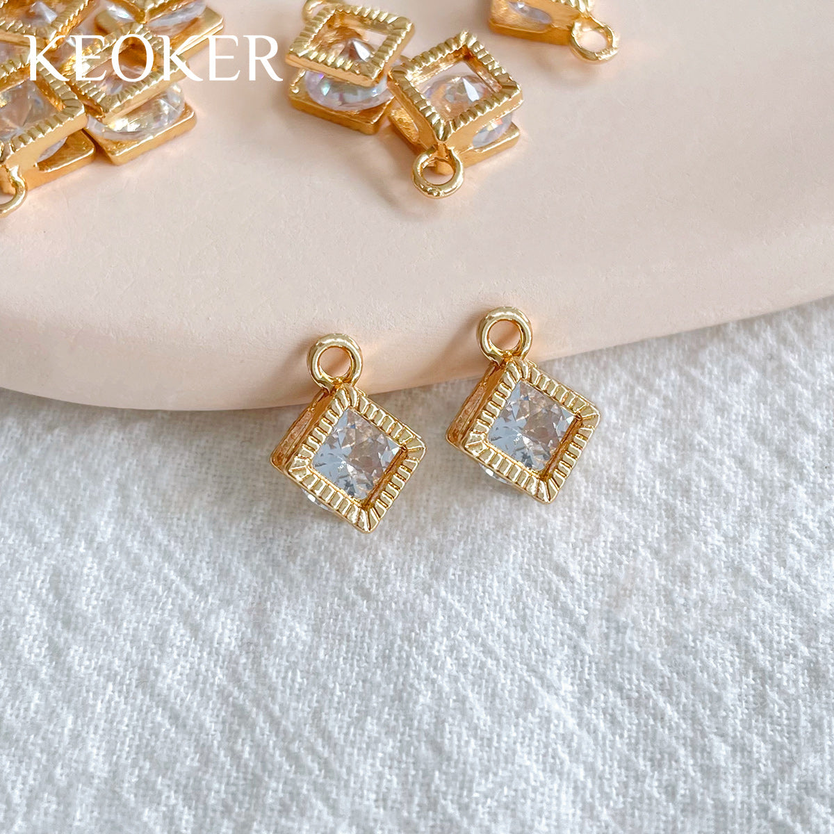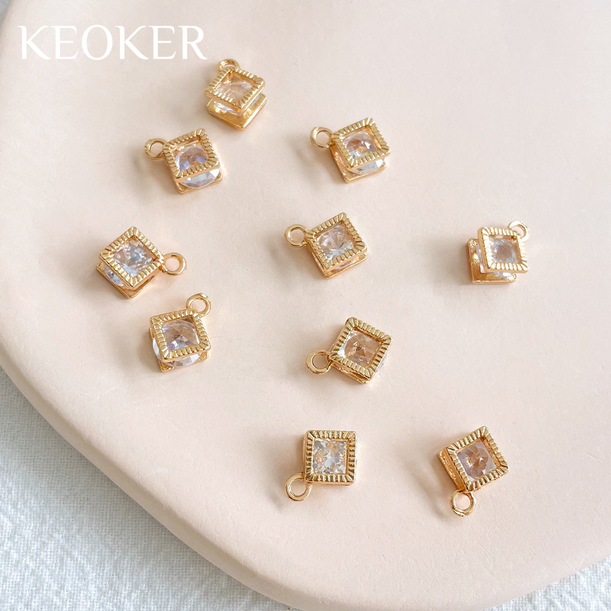 KEOKER 14K Gold Plated Clear Zircon Square Charm Pendant(10PCS)