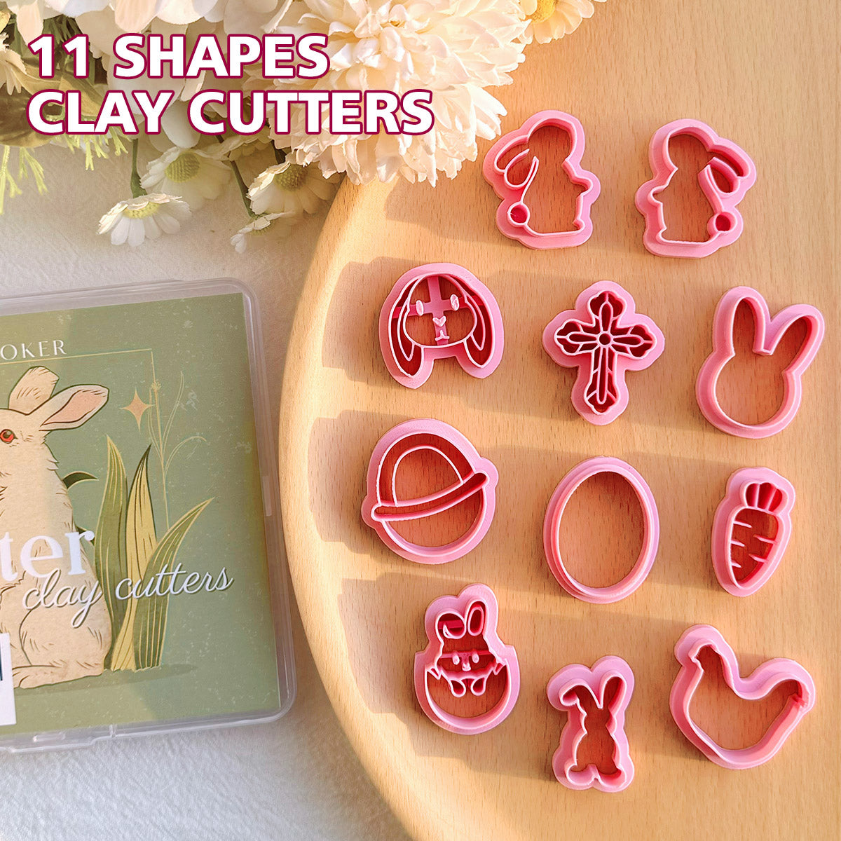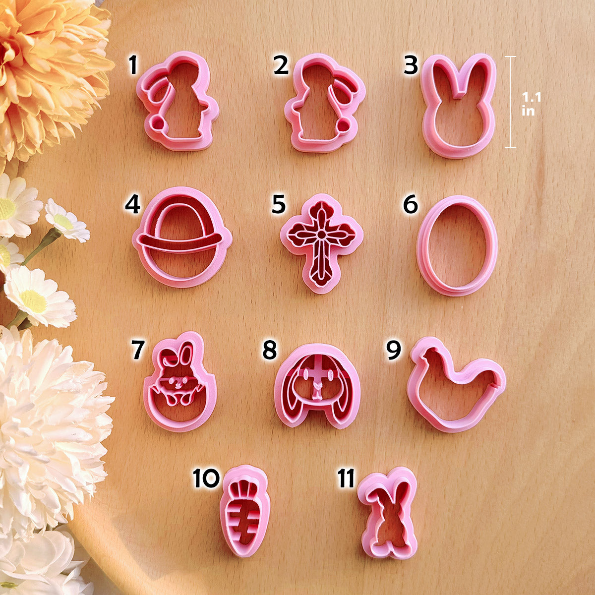 【 Holiday Clay Cutters Set 】11 Easter earring clay cutters: Rabbit clay cutters, Easter egg clay cutter, basket clay cutters, cross clay cutter, hens polymer clay cutters, chicks clay cutter, carrots clay cutters.