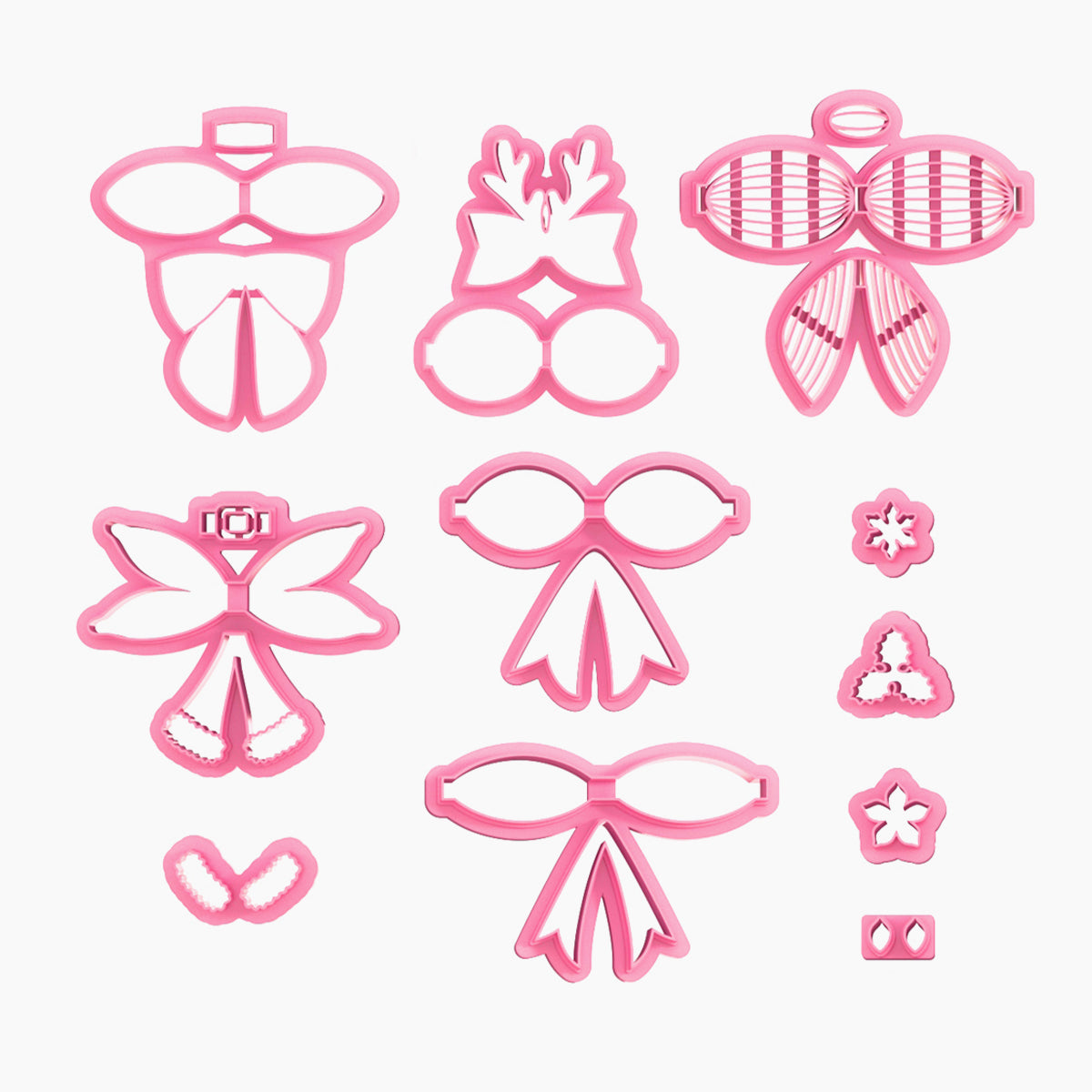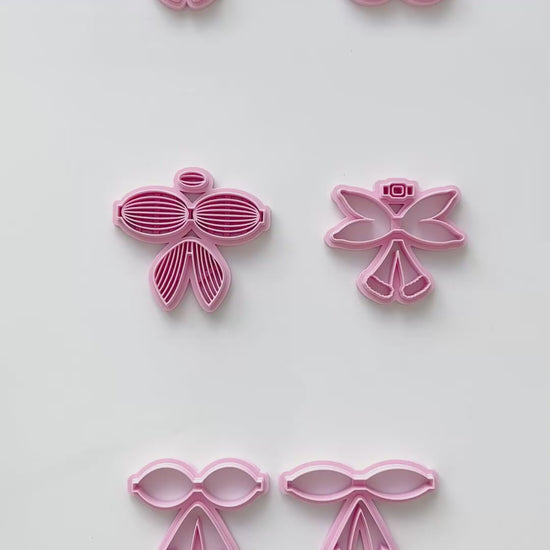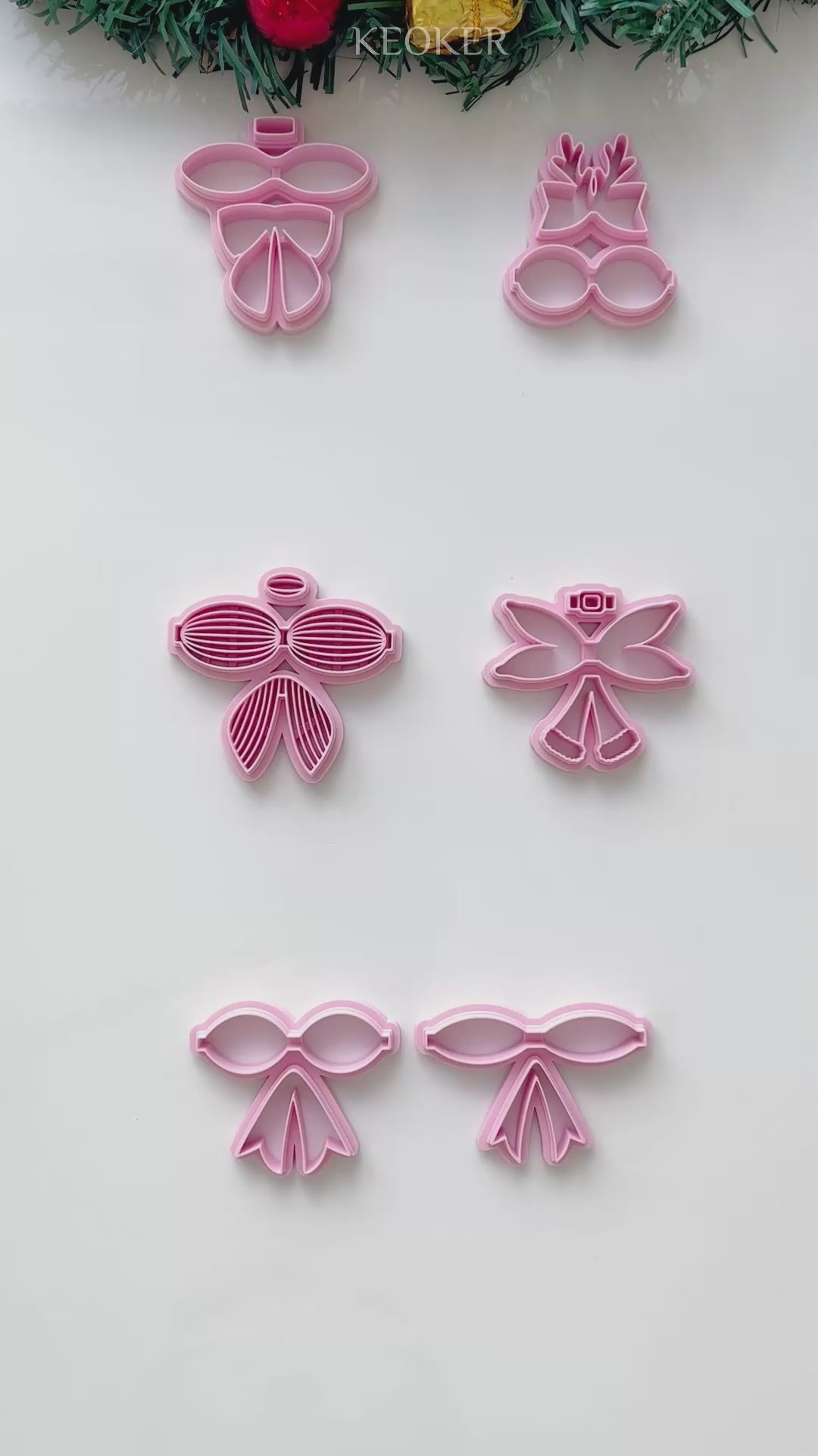 1/ Christmas Clay Cutters: There are 6 bow polymer clay cutters, which can make 5 different bow-shaped earrings.5 polymer clay Christmas cutters for decorating.