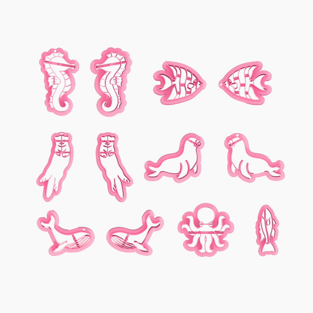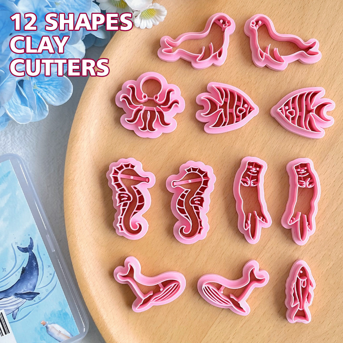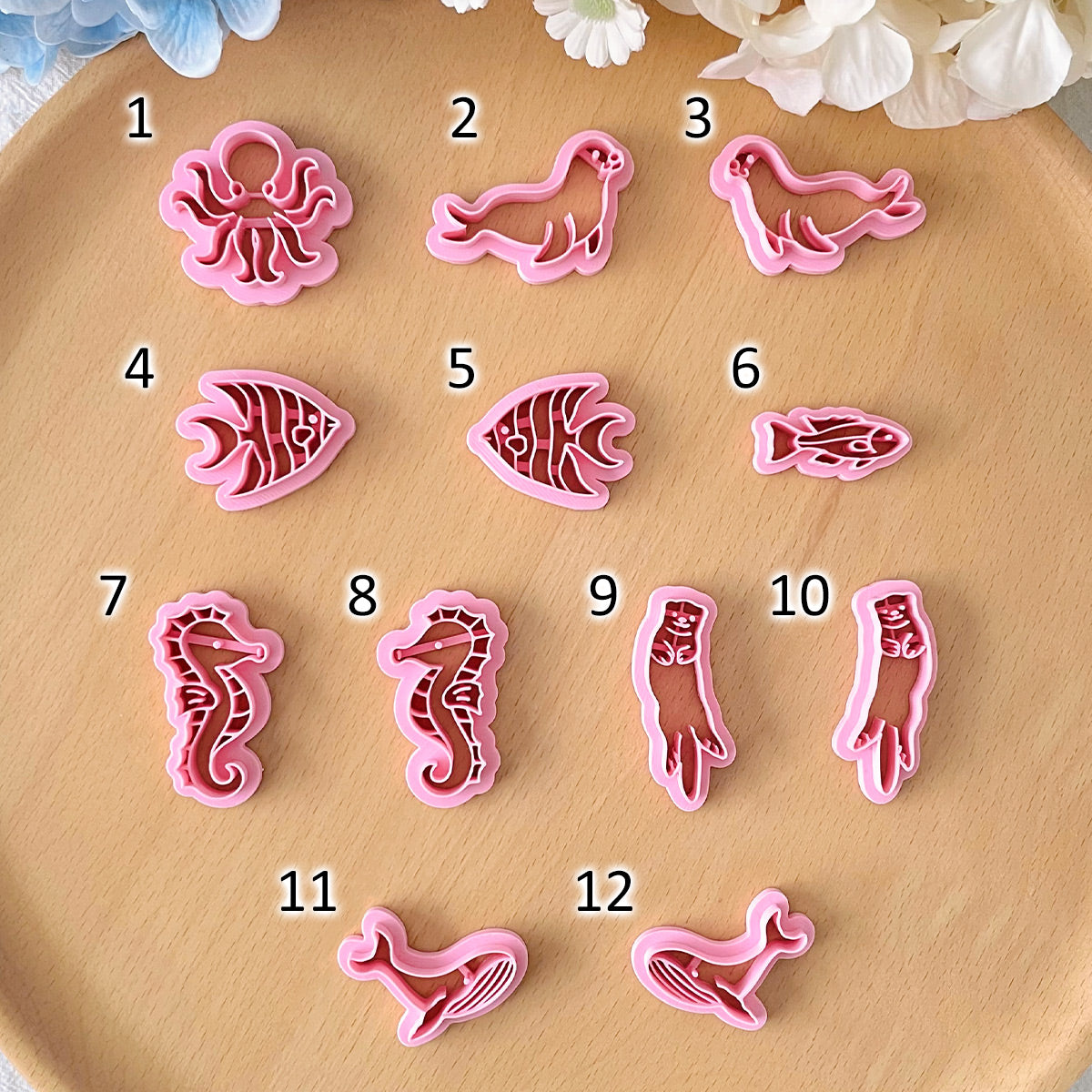 1/ Ocean Clay Earring Cutters: 12 Shapes animal clay cutters: Seahorse clay cutters, otter clay cutters, whale clay cutters, fish clay cutter, sea lion cutters, octopus clay cutter, tropical fish clay cutters.
